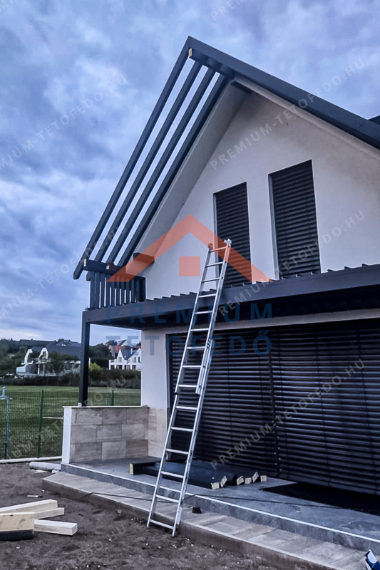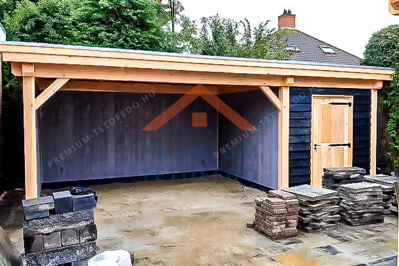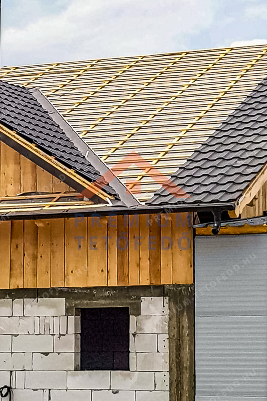 Új garázs építése volt a feladat, ahol cserepes lemezzel készült a tető. Szuper lett!